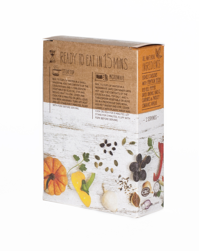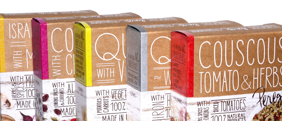 Pereg Gourmet Natural Foods 推出了藜麦-大米-蒸粗麦粉系列,这是一种“超级食品”混合物,将主要的健康益处与国际风味相结合。凭借这条生产线,Pereg 超越了健康美味食品生产的正常界限,并挑战 Squat Design 创造具有咸味、美味吸引力、视觉传达产品自然、营养品质并刺激消费者的包装。